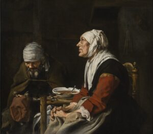 By May of that year, Abraham van Dijck, Nicolaes Maes, and Samuel van Hoogstraten, were together again in Dordrecht. Maes had already returned to his native city in 1653, from study under Rembrandt in Amsterdam,8 and Van Hoogstraten in 1656, from his extensive travels to Germany, Austria, and Italy.9 Abraham van Dijck returned in 1654, after studying around three years under Rembrandt. He had been there as a discipel, or advanced pupil, after initial study under Van Hoogstraten. In a 2020 monographic study on this pupil, the author traced a logical turn in his work toward moralizing genre themes, after settling in Dordrecht, directly influenced by Maes, his former fellow Rembrandt pupil, friend, and neighbour on the Steegoversloot.10 Accordingly, he also adopted a smoother manner, already seen in his Widow of Zarephath and her Son and his Portrait of a Woman, both in the Bader Collection, of or around 1655.11 This is especially evident in the smooth, rounded forms of his Old Man Asleep in The Mauritshuis, which bears a date of 1656, and includes a half-empty bottle to the left, so warning against the vice of drunkenness (fig. 1).12