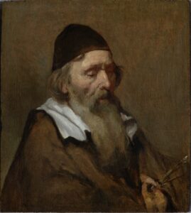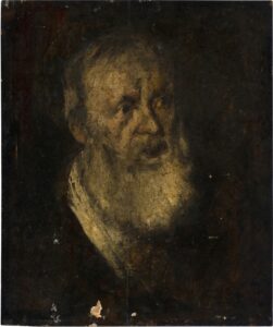 The author additionally posited that a few years after his departure from Rembrandt, Van Dijck returned for a visit. This hypothesis was based purely on stylistic evidence, in particular the broad, flamboyant brushwork in his remarkable canvas of An Old Couple Saying Grace from c. 1656 in a private collection in New York (fig. 2). It appears that soon after the Mauritshuis Old Man, Van Dijck received an impulse to experiment again with the bold, open brushwork, that he had already seen Rembrandt developing in the early 1650s. But now he went much further than when he initially studied under the master, there and in a number of other paintings, including his striking depiction of The Old Painter, recently acquired by The Rembrandt House Museum (fig. 3).13 An evocative head study that recently resurfaced in Milan (fig. 4) belongs to the same moment in Van Dijck’s oeuvre, with a freer, sketchier technique.14 By contrast, another depiction of a humble and pious old couple, dated 1657, shows Van Dijck retreating again from Rembrandt and toward the smoother handling and smaller figure scale of his later work.15 This gives us a brief window of 1656, or perhaps 1657 for the creation of these and other similar paintings.