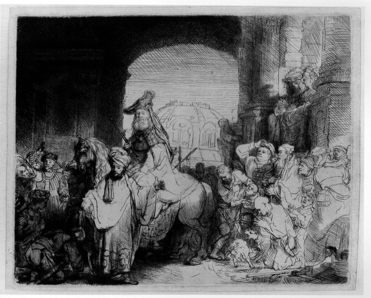 - Melchior Küsel, Icones Biblicae Veteris et Novi Testamenti. Figuren biblischer Historien alten und neuen Testaments, Augsburg 1679, ‘Book of Esther, Chapter 6’, fig. 20; reprint Hildesheim 1968. See also: Peter van der Coelen, ‘Rembrandt in Duitsland – Iconografie en verspreiding van zijn etsen in de zeventiende eeuw’, Kroniek van het Rembrandthuis 2004, no. 1-2, p. 3, fig. 2.