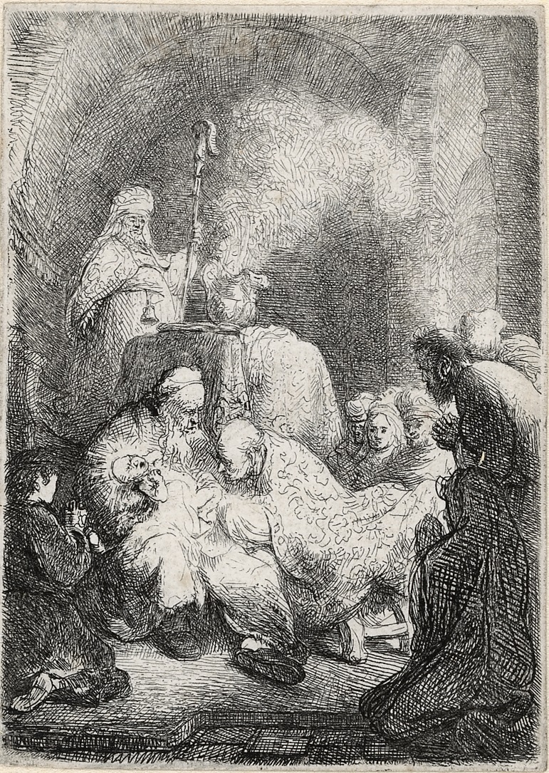 Ovens’s extensive use of figures and motives from Rembrandt’s prints in one single painting is especially striking when we consider that – as far as is known – there are no other such borrowings in any of his paintings.20 We may assume him to be familiar with the remark by Karel van Mander (1548-1606) that “well-cooked turnips [“rapen”, a pun which also refers to gleanings] make a good soup”, which means that an artist who borrows elements from the works of other masters should do so in such a subtle way that it escapes notice.21 Ovens subtly combined figures from several of Rembrandt’s most ambitious, important and technically complicated religious prints, altered their poses and reinterpreted their roles. Thus, he adhered to the contemporary Dutch art-theoretical notion of imitatio: a respectful transformation by the artist of his models.22 Ovens might have wanted to measure up, and pay homage to his possible teacher. He surely will have admired Rembrandt’s mastery of the etching technique. Ovens produced several (history) prints himself, in which the manner of applying etched lines recalls Rembrandt’s graphic work.23