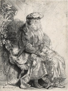 Rembrandt, Jakob en Benjamin, ca. 1637. Ets en drogenaald. Museum Rembrandthuis.